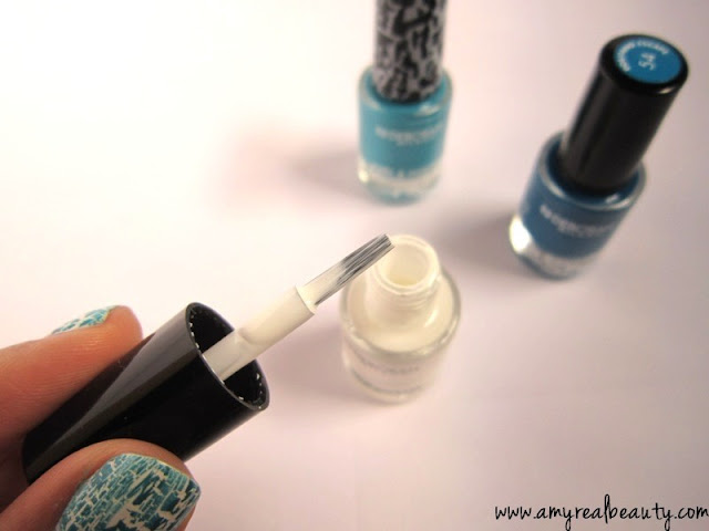 Alors la méthode, c'est hyper facile, il suffit de mettre deux couches du vernis ( 01 french manicure), par la suite vous appliquez le crack de la forme que vous préférez, délimitez le bord du crack par un trait bleu et à l'aide d'un dotting tool vous mettez des petits points sur le trait!